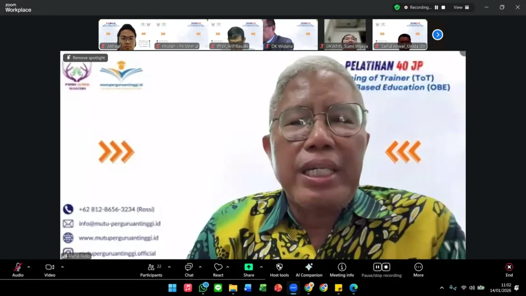 Cetak Trainer Kurikulum Masa Depan: Sukses Digelar Pelatihan TOT OBE Batch 5 Secara Daring